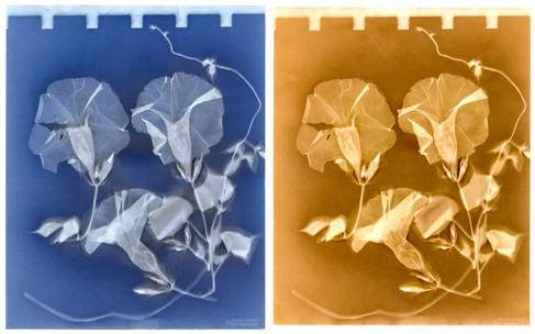 The Morning Glories Series... producing reds, blues, and yellows color shades... once fixed, the colors of the lumen print will change significantly, often ripening to rich browns and golden yellows - David Arnold